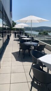 Sommerabend auf der großen Terrasse. Donau-Blick. Genussmomente. Austausch.